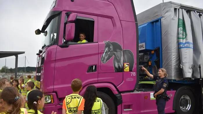 Die Kinder der Volksschule St. Ruprecht an der Raab lernten im Rahmen einer Verkehrsschulung mit dem Lkw-Unternehmen „Matzhold“ mehr Achtsamkeit für die Gefahren im Straßenverkehr.