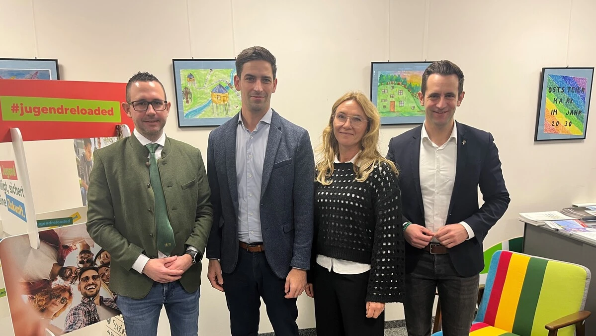 Regionalentwicklung Oststeiermark: Der künftige Regionalmanager Martin Buchsbaum (2.v.l.) mit der interimistischen Leiterin Gabriele Jahn sowie den Abgeordneten Manuel Pfeifer (l.) und Lukas Schnitzer