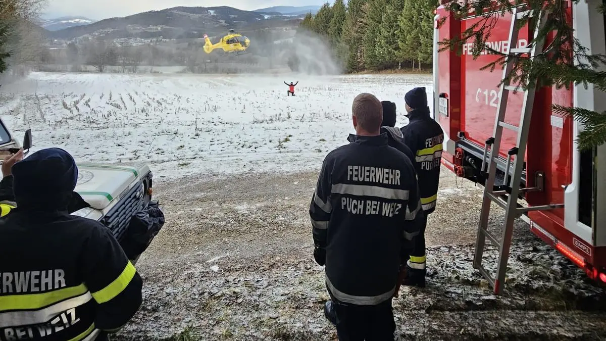 Nach der Erstversorgung wurde der 57-Jährige mit Verletzungen unbestimmten Grades vom Rettungshubschrauber Christophorus 12 ins LKH Graz geflogen. Neben der FF Puch bei Weiz standen die Polizei, das Rote Kreuz sowie Notarzt und Bergrettung im Einsatz.
