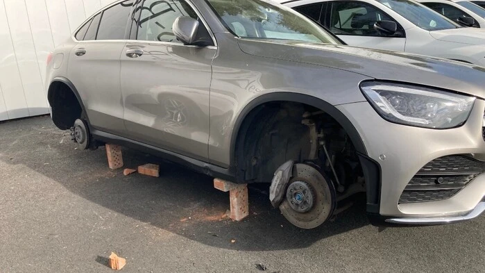 Diebe bockten Autos auf Ziegel auf und montierten Räder ab