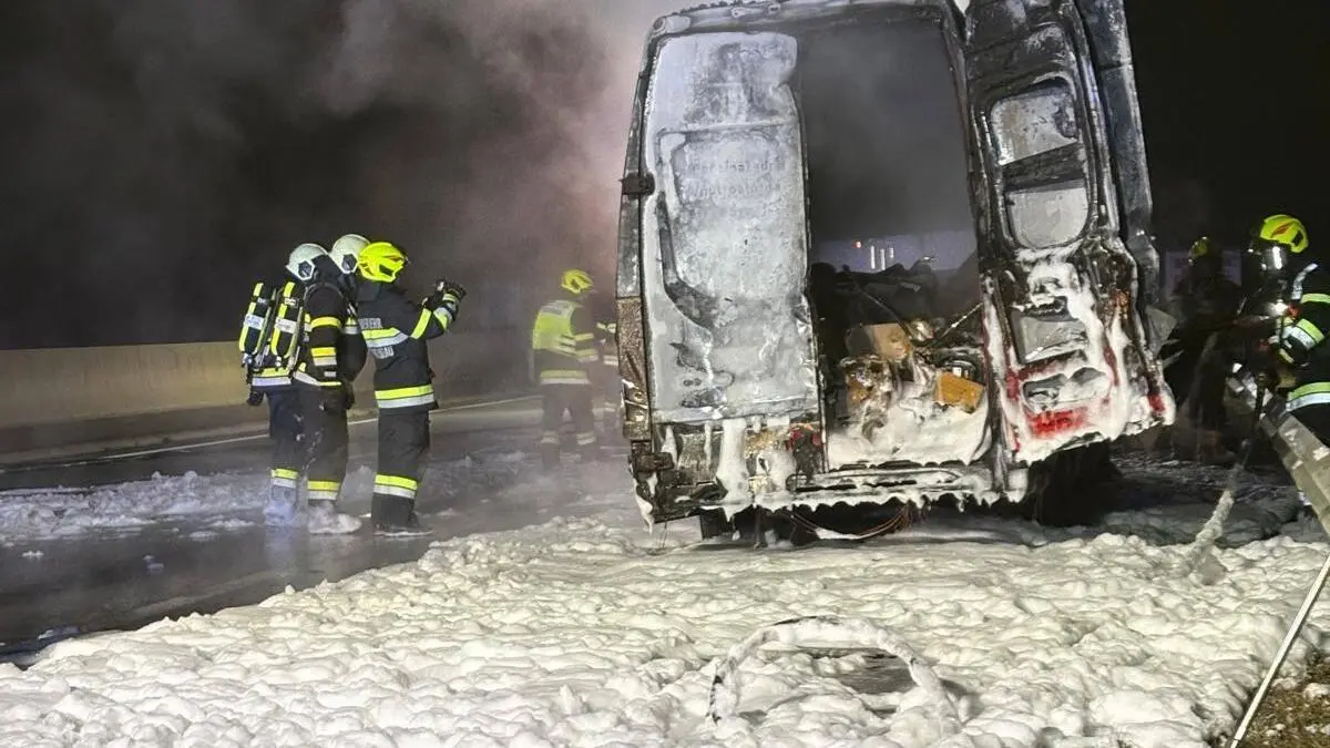 Kleintransporter ging mitten auf der Autobahn in Flammen auf
