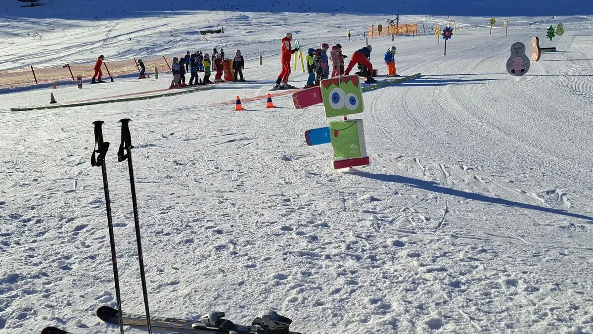 Luisa und David lernen bei der Skischule von Franz Reisinger auf der Teichalm Skifahren