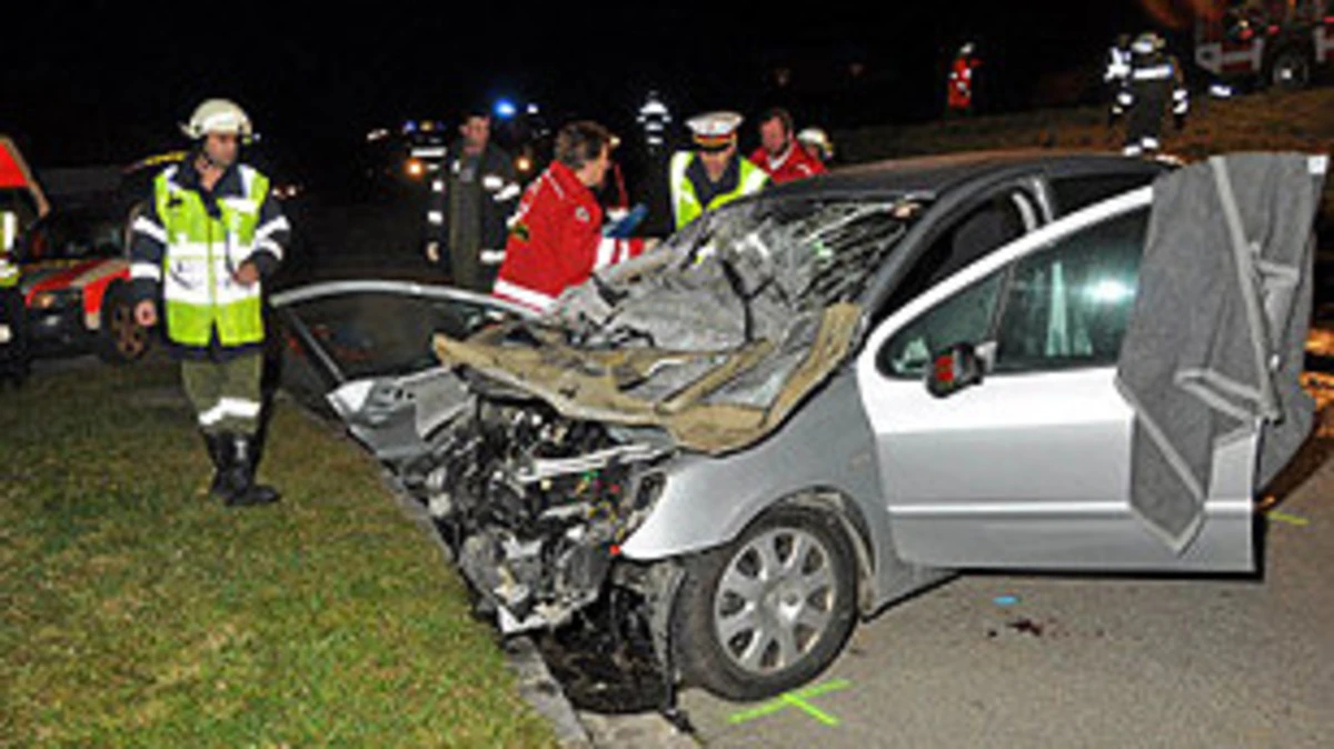 38-Jähriger aus Ilz fuhr auf A2 auf Lkw auf und überschlug sich mehrmals. 78-jährige Beifahrerin starb in Schlag bei Thalberg bei Auffahrunfall auf Traktor mit Holzladung.
