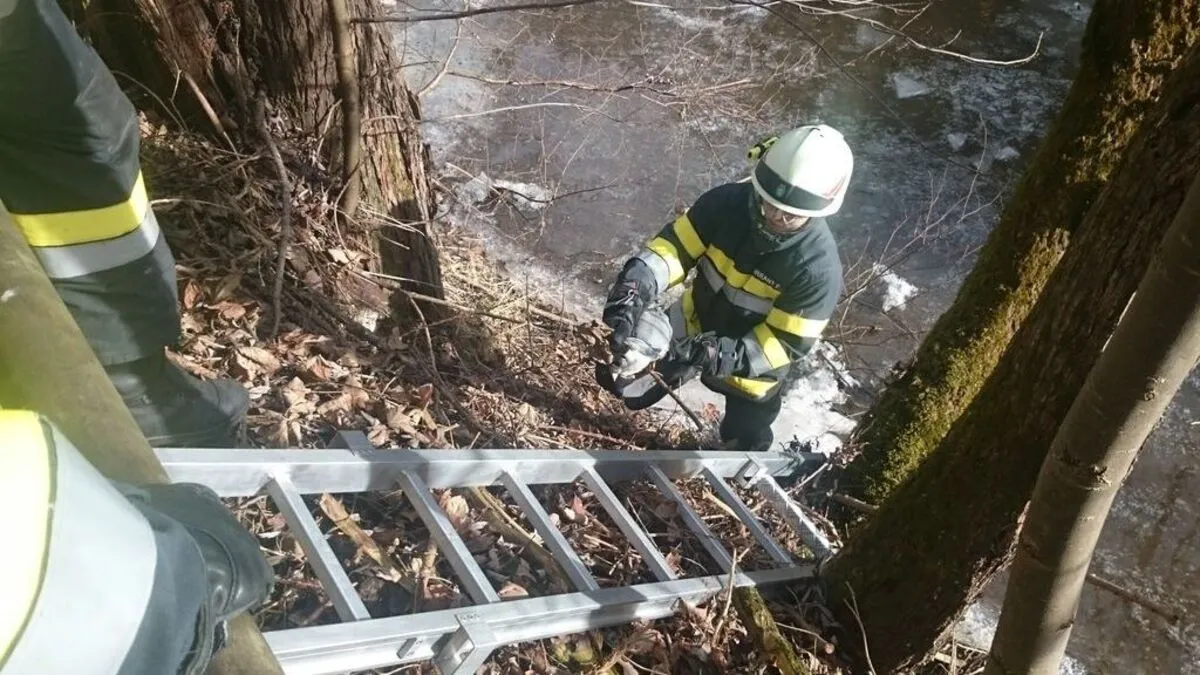 Die Feuerwehr Birkfeld barg einen flugunfähigen Fischreiher vom Ufer der Feistritz. Bei massiven offenen Trümmerbrüchen konnte dem Tier aber nicht mehr geholfen werden.