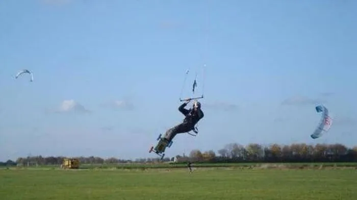 Windböe erfasste Schirm eines 30 Jahre alten Kite-Landboarders aus Graz, er wurde sechs Meter hoch in die Luft katapultiert.
