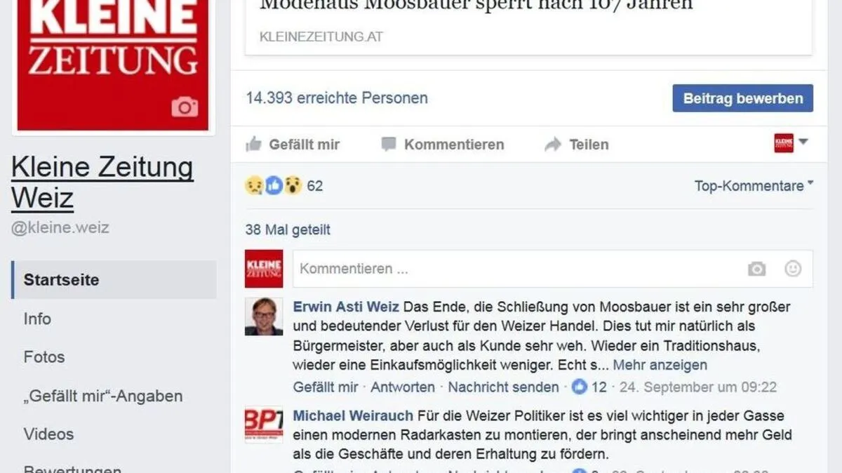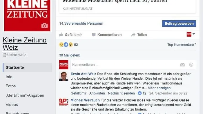 Die Stadt Weiz half dem SC Weiz aus der Schuldenkrise und mit dem Modehaus Moosbauer schloss ein weiteres Traditionsunternehmen in Weiz - das wurde heftig diskutiert.