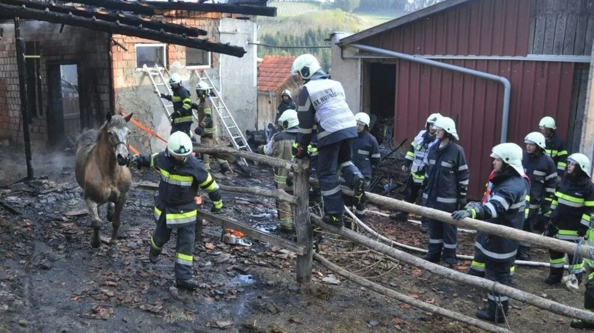 Montagfrüh brannte ein Wirtschaftsgebäude in St. Ruprecht komplett ab. Fast alle Tiere konnten sich selbst retten, auch ein Pferd, das lange im brennenden Gebäude stand, wurde lebend geborgen.
