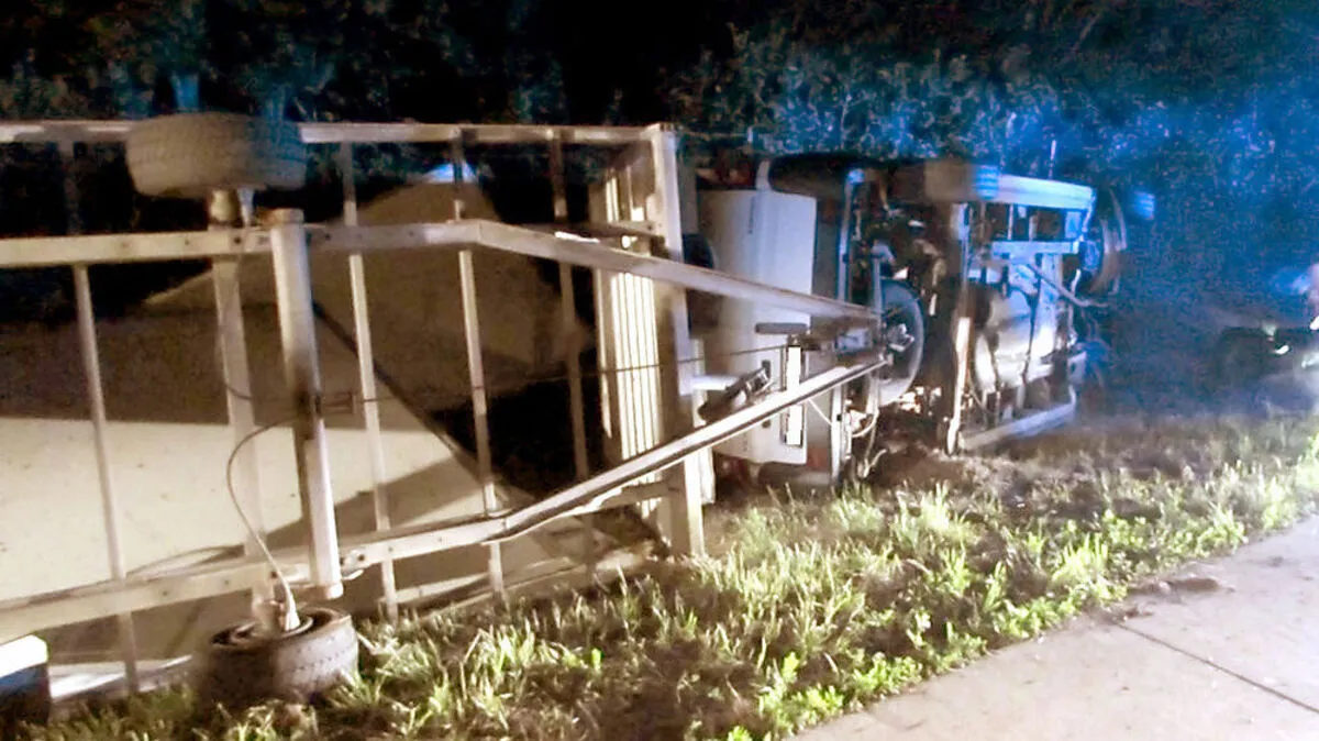 Auf der Südautobahn kam es in der Nacht auf Mittwoch zu einem spektakulären Unfall: Ein Kleintransporter mit Anhänger rutschte über die Böschung und überschlug sich, verletzt wurde niemand.