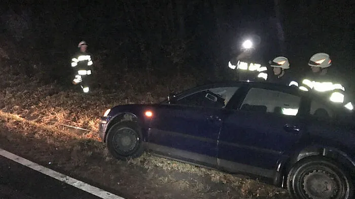 Ein Pkw geriet auf der B72 in eine Wasserrinne, die Feuerwehr zog das Fahrzeug wieder auf die Straße.