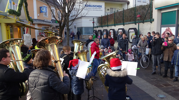 Zu "Groovy Tuba Christmas" lud das Tubaensemble der Tubaklasse von Peter Derler der Musikschule Weiz am Vormittag des Vorweihnachtstages in die Europaallee zur Weizbachbrücke.
