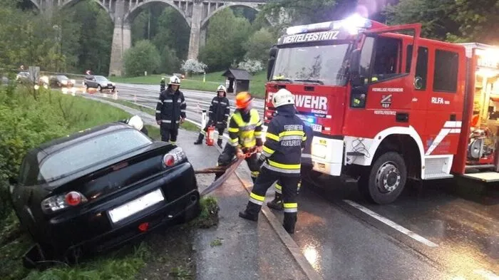 Die Straße war nass, es regnete: Auf der B72 bei Anger verlor ein Lenker am Donnerstagabend die Kontrolle über sein Fahrzeug.