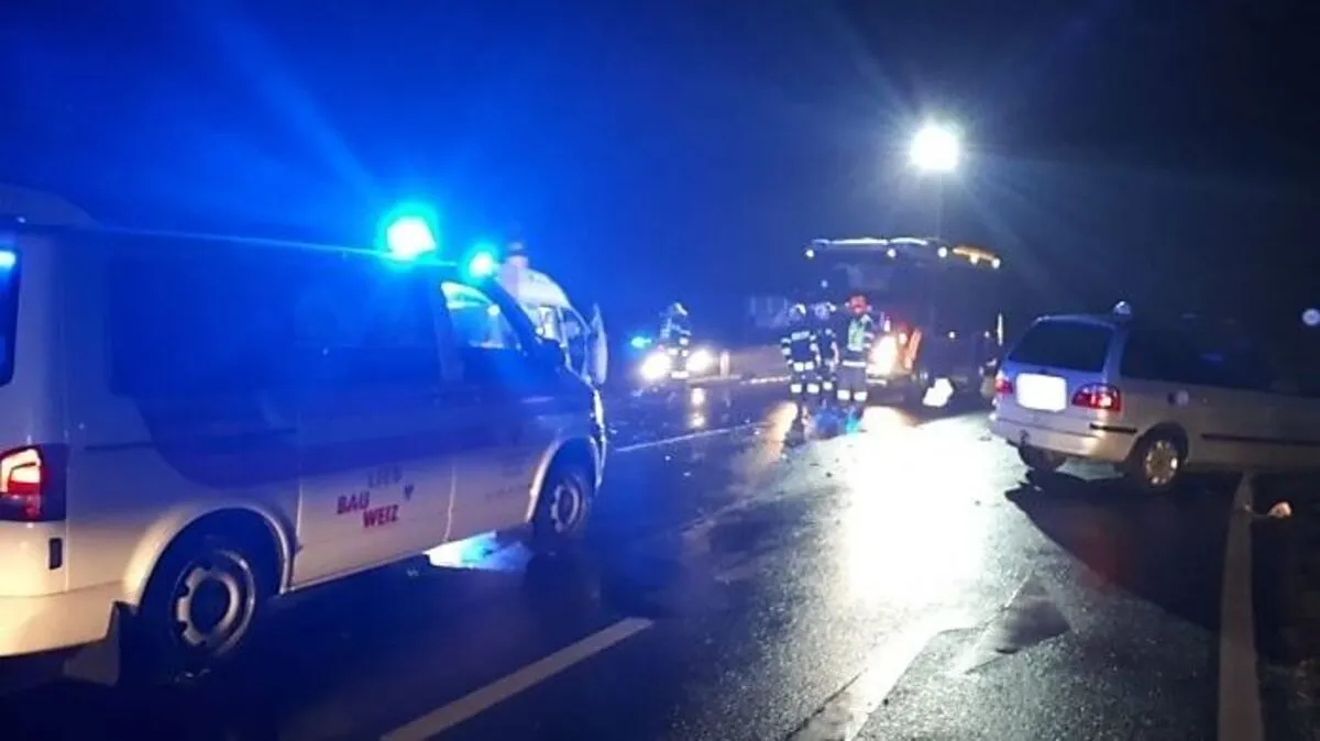 Bei Anger prallten ein Pkw und ein Rot-Kreuz-Wagen zusammen. Es gab mehrere Verletzte. Der Pkw-Lenker war alkoholisiert. Die B72 war für fast zwei Stunden gesperrt.