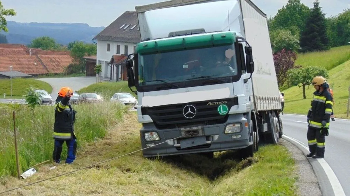 Lkw landete im Straßengraben