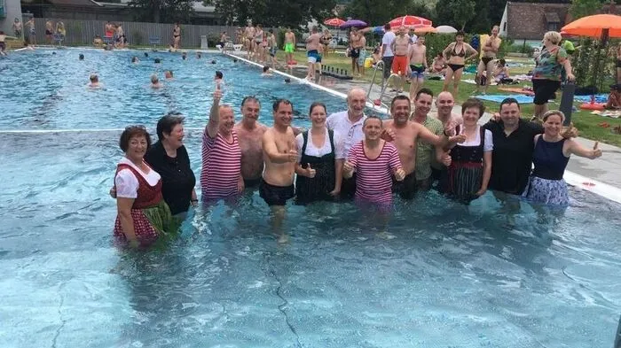 Gar nicht wasserscheu zeigten sich Gemeindevertreter von Anger oder LH-Stv. Michael Schickhofer bei der Eröffnung des Angerer Freibades