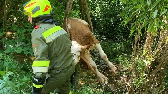 Feuerwehr rettet stark unterkühltes Kalb aus Bach