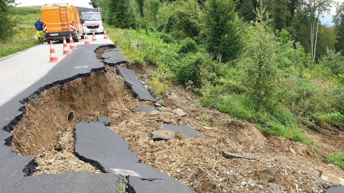 Im Laufe des Montags wurde ein Teil der Gemeindestraße zwischen dem Ort Ludersdorf und dem Schloss Freiberg weggerissen. Die Straße ist nun gesperrt, eine Umleitung wurde eingerichtet.