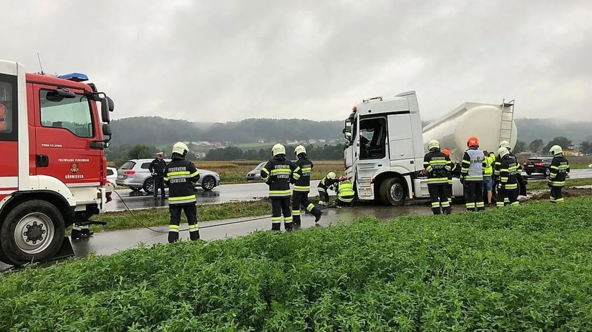 Die Feuerwehren St. Ruprecht und Kühwiesen konnten den Tanklaster rasch bergen