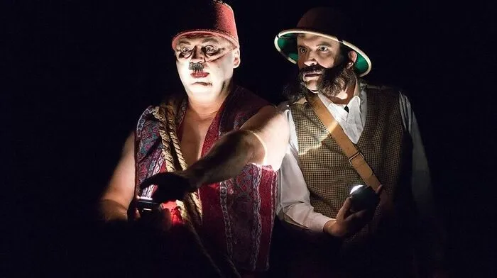 Angelehnt an Hitchcock- und Polanski-Filme glänzen Günther Grossegger und Johannes Hofer im Huabn-Theater in der Kostumkomödie "Das Geheimnis der Irma Vep".