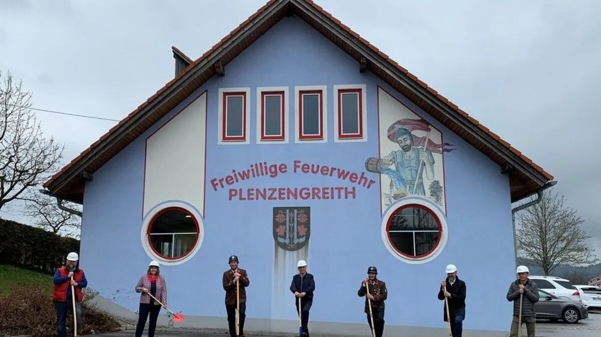 Spatenstich für die Sanierung des Rüsthauses der Feuerwehr Plenzengreith (Gemeinde Passail) am Freitag. Eine Waschbox wird dazugebaut, das Haus selbst saniert. Kosten: rund 275.000 Euro.
