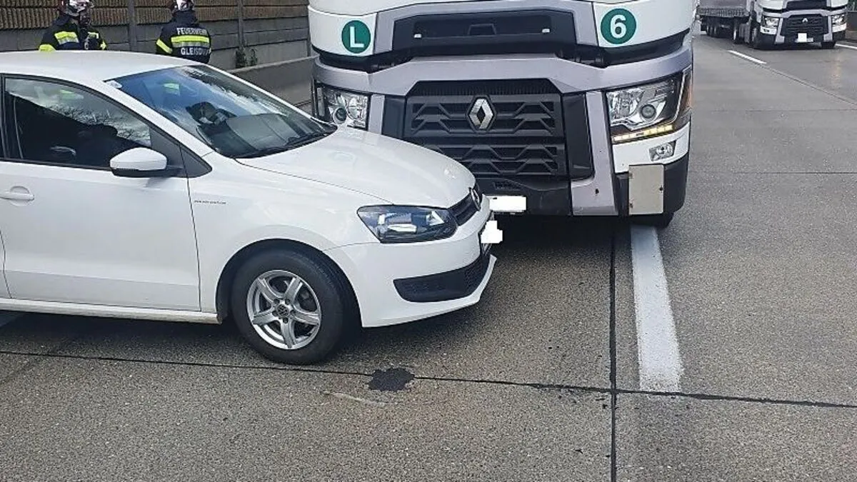 Bei der Auffahrt Gleisdorf West auf die A2 Südautobahn kam es zu einer Kollision zwischen einem Lkw und einem Pkw. Der Pkw-Lenker wurde verletzt.