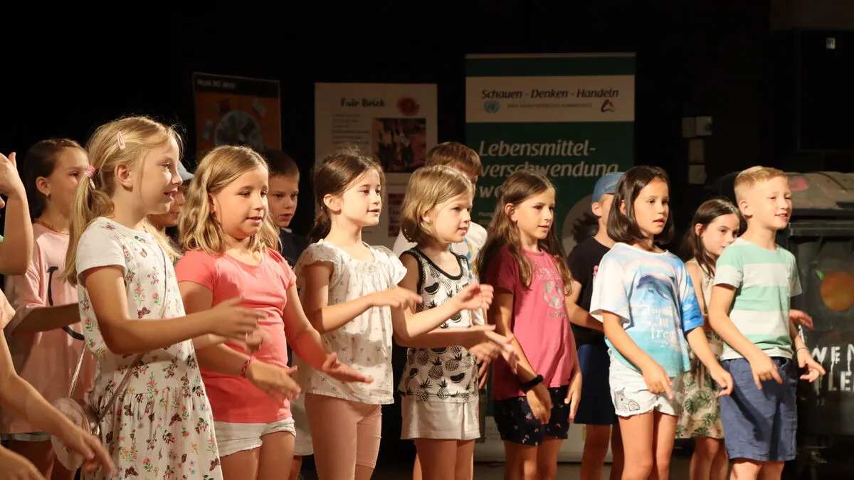 Schülerinnen und Schüler trommelten gegen die Lebensmittelverschwendung