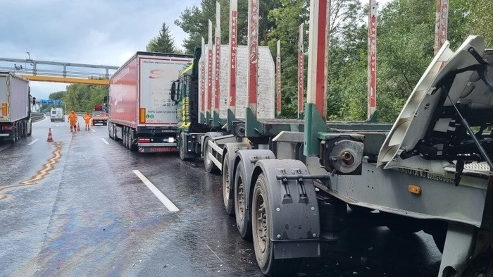 Unfall mit drei Lkw und einem Pkw: Eine Person unbestimmten Grades verletzt