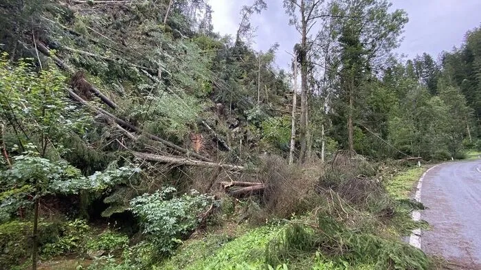 Ende August fegten starke Sturmböen über den Bezirk Weiz. Die L 405 Vorauer Straße zwischen Birkfeld und Miesenbach ist seitdem gesperrt. Im Dezember soll die Straße halbseitig wieder befahrbar sein.