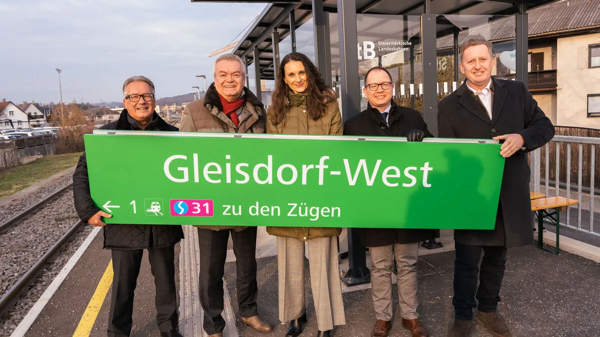 Rund 120 Meter lang, mit einem barrierefreien Zugang und einem neuen Fahrgastunterstand - so präsentiert sich die neue Zughaltestelle in Gleisdorf West. Auch der neue E-Bus wurde vorgestellt.