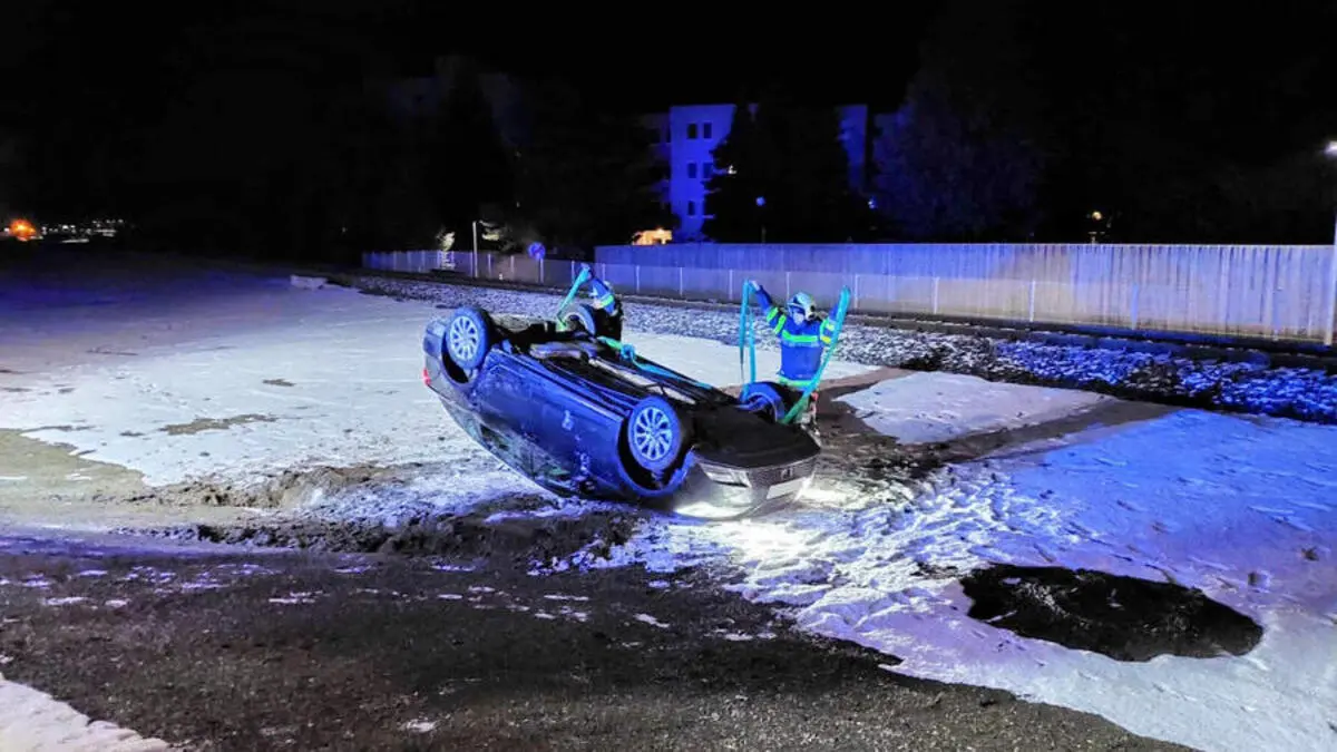 Pkw geriet ins Schleudern und landete auf dem Dach