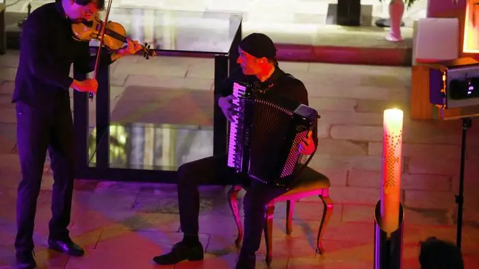 Das Konzert der Musiker Igmar Jenner (Violine) und Borut Mori (Akkordeon) in der Taborkirche Weiz im Rahmen des "pfingstART"-Festivals für Kunst, Literatur und Philosophie war ein ergreifendes Spiel mit Licht, Schatten, Stille und Klang. Organisiert wurde die Veranstaltung vom Künstler Walter Kratner. Nachdem dieser im April überraschend mit nur 69 Jahren verstorben war, machten Fery Berger und das Team der Weizer "Pfingstvision" den Abend zum Gedenkkonzert für Kratner, der 22 Jahre lang als Kurator für die "pfingstART" aktiv war.