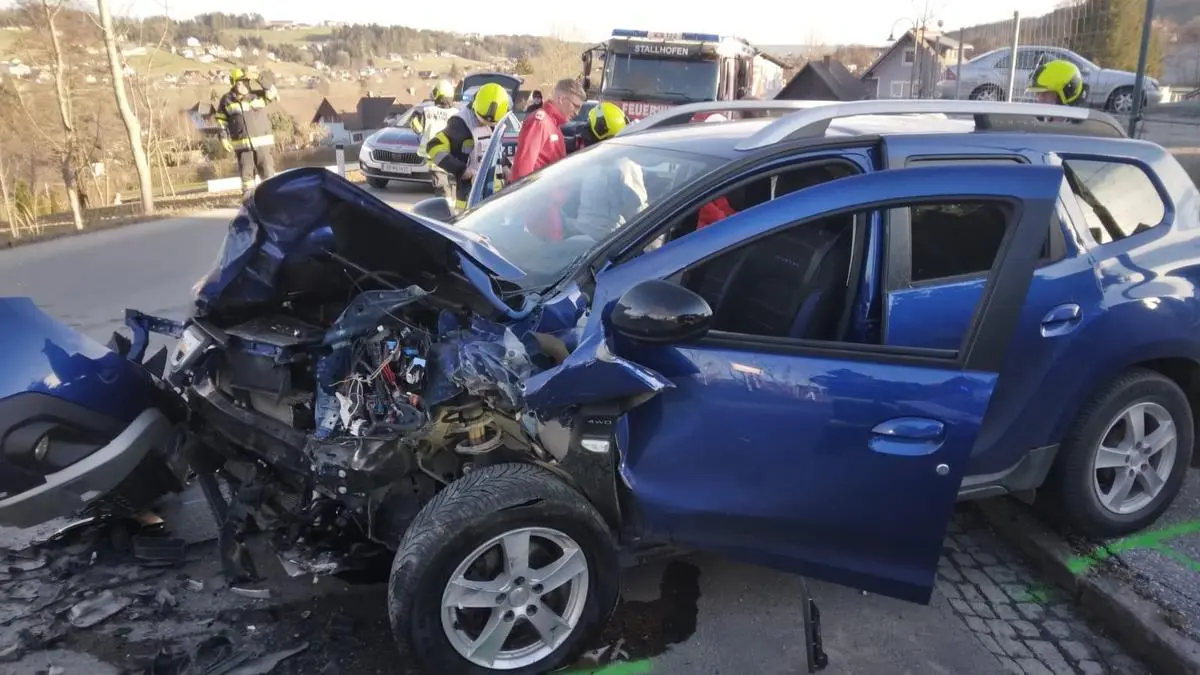 Am Dienstagnachmittag, dem 16. Jänner, kam es zu einem schweren Verkehrsunfall in Stallhofen. „In einer scharfen Kurve zwischen Lobming und Stallhofen sind zwei Autos zusammengefahren“, schildert HBI Rupert Preglau, Kommandant der FF Stallhofen, die gegen 15 Uhr alarmiert wurde. Einer der Pkw kam bei dem Unfall im Bereich der Ruppbauernhöhe von der Fahrbahn ab und kam etwa acht Meter von der Straße entfernt auf einem Acker zum Stehen.
