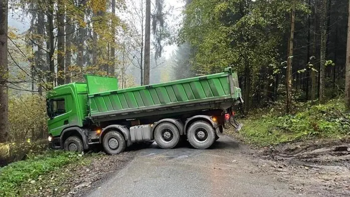 Im aufgeweichten Boden blieb der Lkw stecken