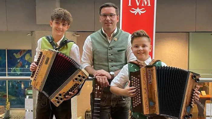 In Innsbruck drehte sich am Nationalfeiertag alles um die Volksmusik. Zum 25. Alpenländischen Volksmusikwettbewerb, bei dem der Herma Haselsteiner Preis verliehen wird, lud der Tiroler Volksmusikverein, und auch das Harmonikaduo „Felix & Lenny“ mit Felix Zwantschko und Lenny Lednik von der Musikschule Voitsberg war mit Lehrer Andreas Amreich und ihren Familien vor Ort, um sich einer hochkarätigen Jury zu stellen und im Rahmen der viertägigen Veranstaltung aufzutreten.