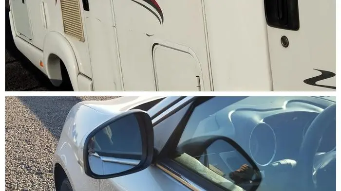 Daraufhin zückte der Italiener sein Handy und zeigte den Neupreis des Rückspiegels: 600 Euro. Nachdem die Urlauber nicht darauf einstiegen, gab das vermeintliche Unfallopfer vor, auf Verkaufsplattformen im Internet nach günstigeren Alternativen zu suchen – und tatsächlich gab es den Rückspiegel dort schon um 330 Euro. Um seine Forderung zu untermauern, zeigte der Italiener auf die sichtbaren Spuren der mutmaßlichen Kollision – ein längerer, wellenförmiger, schwarzer Strich an der Seite des Wohnmobils. „Da ist man natürlich eingeschüchtert, diesen Überraschungsmoment wollen sie ausnutzen“, analysiert der Pensionist. Mit dem Finger fuhr er am vermeintlichen Kratzer entlang. „Beschädigung gab es am Wohnmobil keine, stattdessen waren meine Finger ganz schwarz – der Strich wurde offensichtlich mit Kreide aufgemalt.“