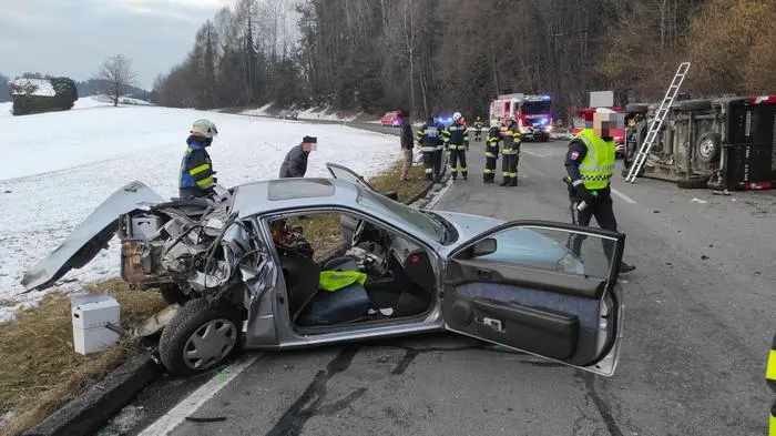 Ein schwerer Verkehrsunfall ereignete sich am Freitag, 21. Februar, kurz vor 7 Uhr in Steinberg bei Ligist. Aus noch ungeklärter Ursache kollidierten zwei Fahrzeuge auf der Schilcherweinstraße. Eine Person wurde bei dem Unfall unbestimmten Grades verletzt, „aber es ist Gott sei Dank glimpflicher ausgegangen, als es zunächst ausgeschaut hat“, ist Hauptbrandinspektor Hans-Peter Langmann, Kommandant der FF Steinberg, erleichtert.