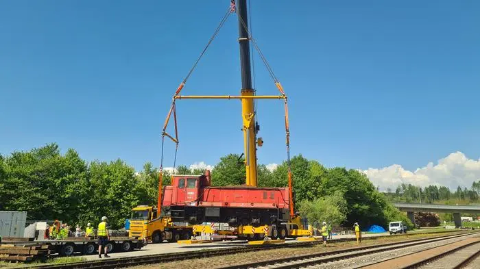 Eine alte Verschub-Lokomotive der GKB, die einst mit Kohle beladene Güterwaggons zog, wurde am Bärnbacher Bahnhof mit einem Kran auf einen Lkw gehoben und ins Bergbaumuseum Karlschacht gebracht. Dort wird sie am 3. Mai offiziell präsentiert.