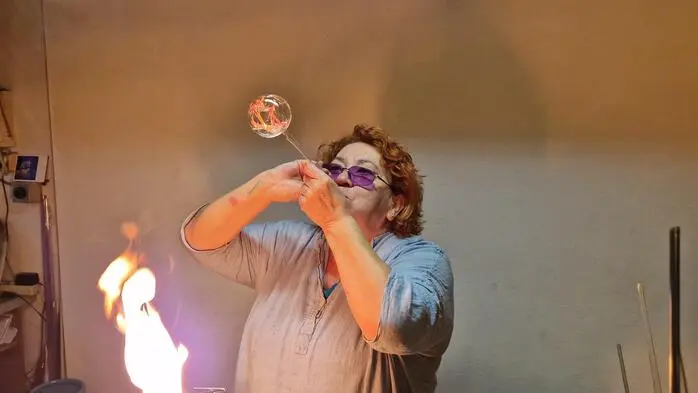 Bei 1200 Grad gestaltet Glasbläserin Renate Prehal (65) filigrane Christbaumkugeln