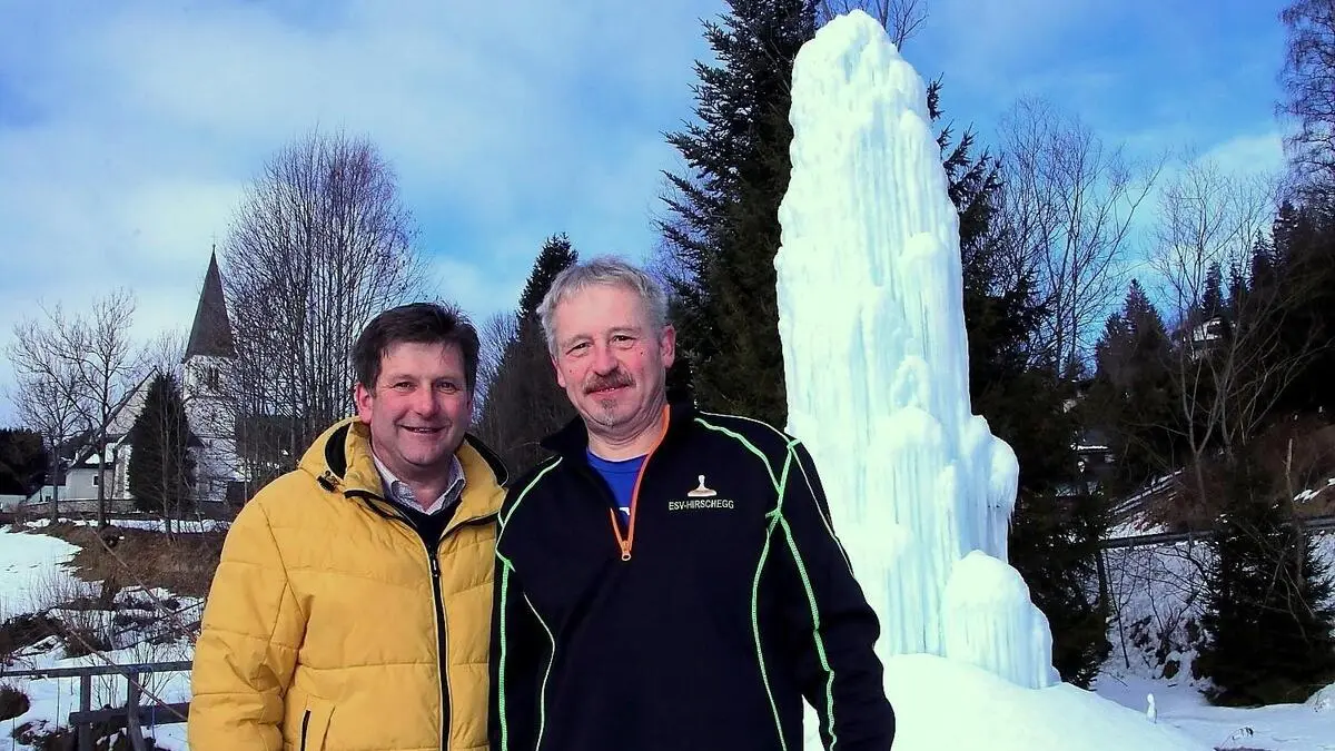 Meterhohe Eissäule ist das winterliche Wahrzeichen von Hirschegg