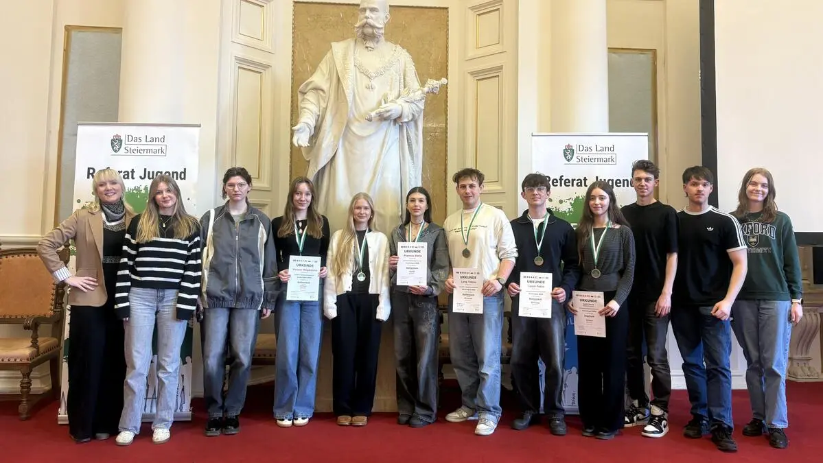 Kürzlich fand an der Karl-Franzens-Universität in Graz der renommierte Sprachenbewerb „EuroLingua“ statt. Dieses Jahr konnten sich so viele Schülerinnen und Schüler des BG/BRG/BORG Köflach qualifizieren wie noch nie. In einem Vorentscheid stellten die Jugendlichen ihr Können in den Kompetenzen Hören und Lesen unter Beweis – nur die Besten qualifizierten sich für das Landesfinale. „Der Steiermark-Wettbewerb stellte hohe Anforderungen an die Teilnehmenden: Gefragt war das mündliche Können. Die Schülerinnen und Schüler mussten spontan über Themen sprechen, die ihnen erst direkt vor Ort zugeteilt wurden. Neben sprachlicher Korrektheit waren dabei auch Ausdrucksfähigkeit, Argumentationsgeschick, Wortschatzreichtum und selbstbewusstes Auftreten entscheidend", teilt die Schule mit.