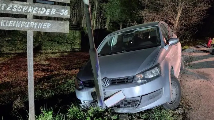 Pkw kam von der Straße ab und prallte gegen Straßenlaterne