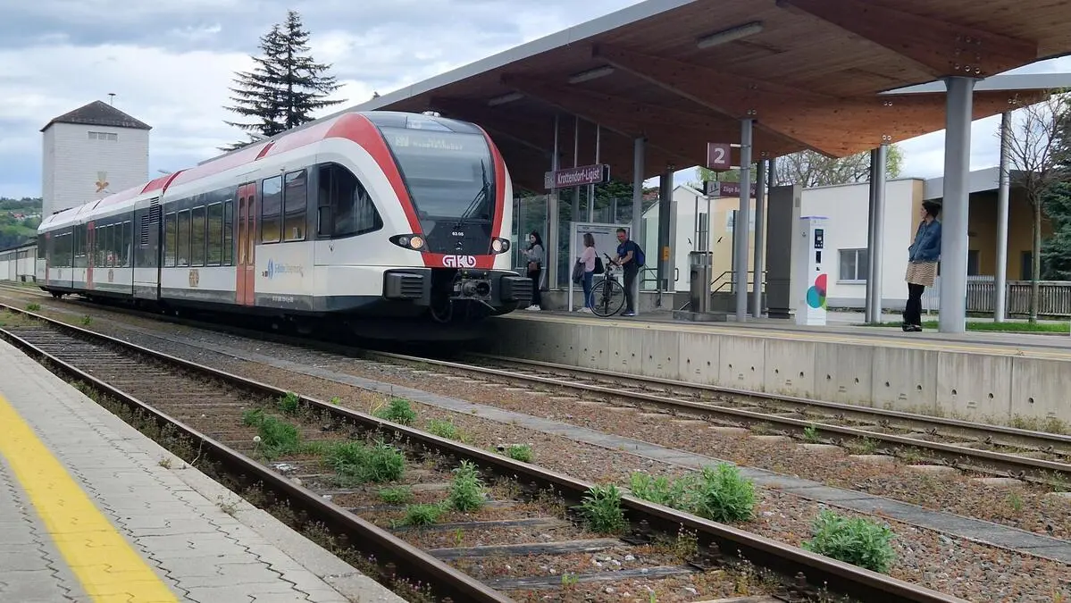 Die Bahnstrecke zwischen Köflach und Lieboch (hier zu sehen: der Bahnhof Krottendorf-Ligist) wird bis voraussichtlich 2033 elektrifiziert und modernisiert