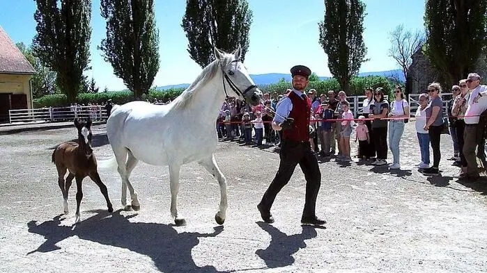 Beim Fohlenerlebnistag am Freitag gewährte das Bundesgestüt einen Einblick in die Kinderstube der Lipizzaner. Zahlreiche Besucher waren gekommen.