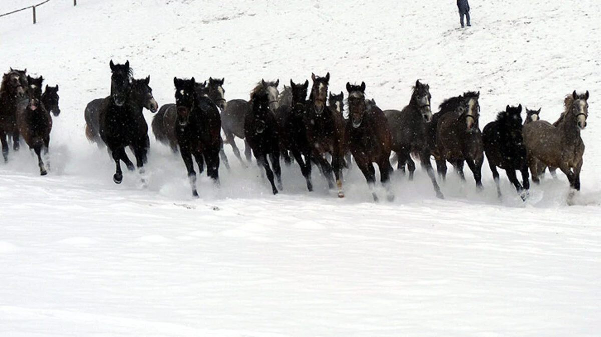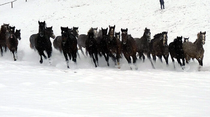 Gestern wurden die Hengste losgelassen: Michael Schlamberger machte Winteraufnahmen beim Außenhof Wilhelm für eine Universumfolge über Lipizzaner.