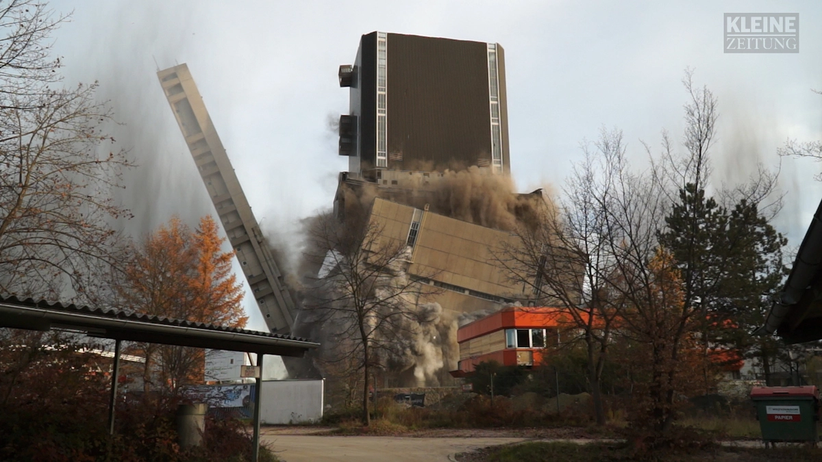 Zehn Sekunden hätte die Sprengung des Kesselhauses des früheren Kraftwerks in Voitsberg dauern sollen, in diesen Sekunden ist aber nur ein kleiner Teil zu Boden gegangen. Die missglückte Sprengung aus drei Perspektiven
