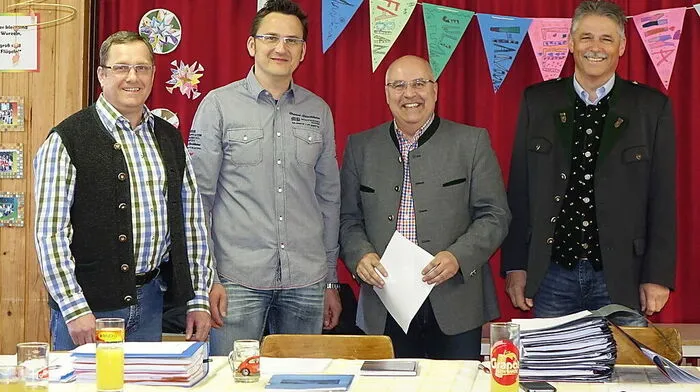 Neo-Gemeinderat Alexander Wölkart (Zweiter von links) mit Vize Bernsteiner, Bürgermeister Riemer und Kassier Feier