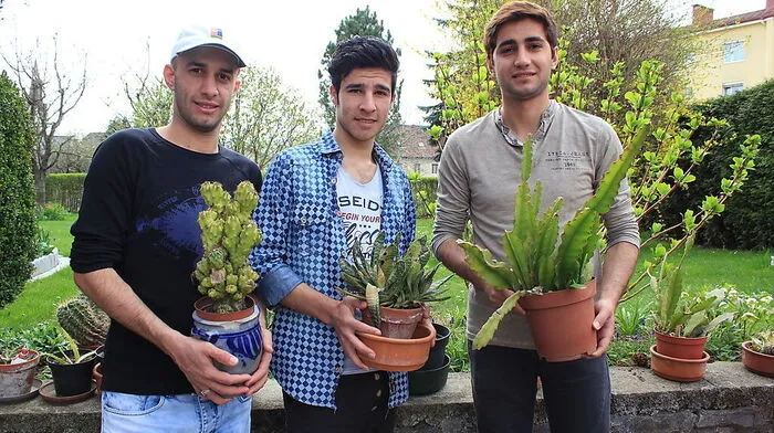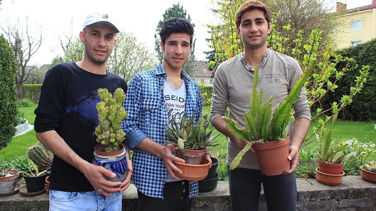 Fahad Al Farha, Hajikhalaf Hassan und Qusai Albajati (von links) mit den Kakteen, die der Dieb stehlen wollte