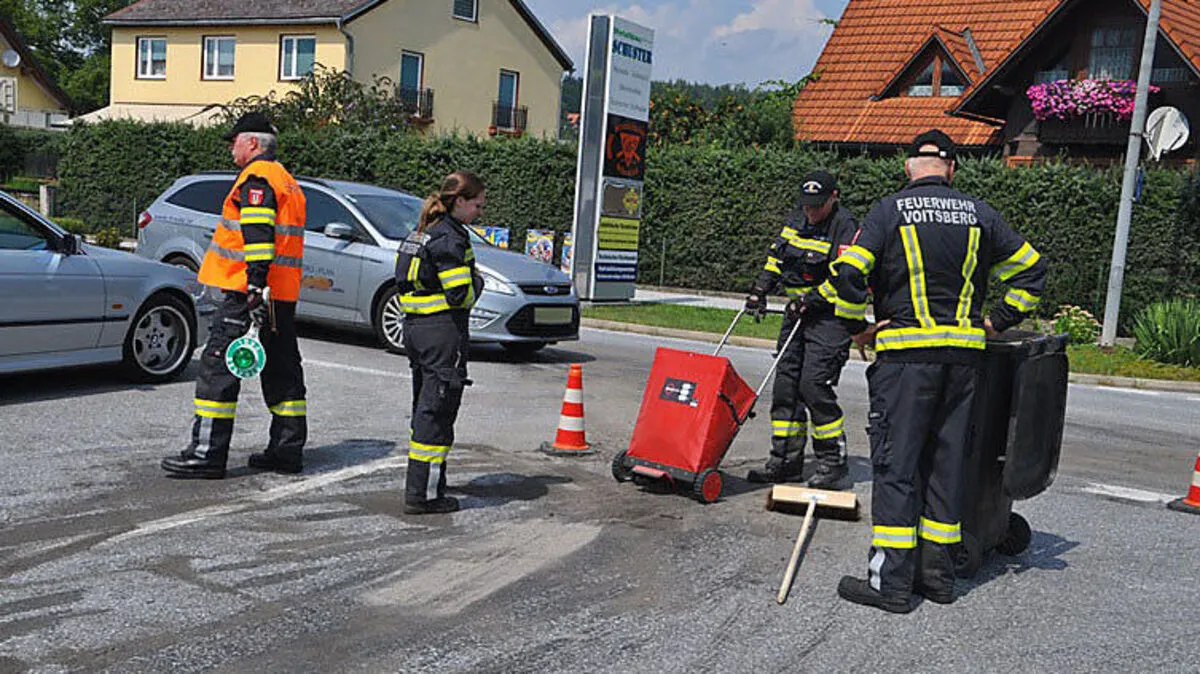 Auf der Grazer Vorstadt in Voitsberg ist Montag am Nachmittag der Ölschlauch eines Pkw geplatzt. Acht Feuerwehrkameraden rückten aus, um das ausgeflossene Öl zu binden.