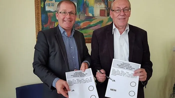 Die Bürgermeister Bernd Osprian (links) und Ernst Meixner lassen die Bürger entscheiden