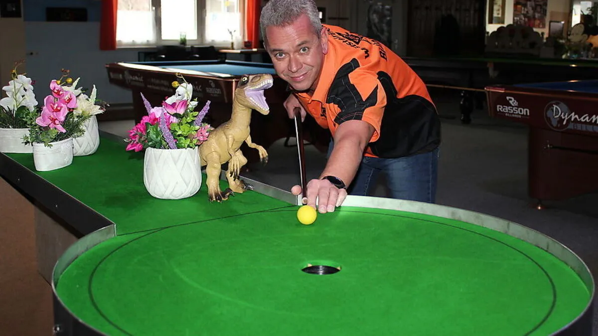 Eine Weltneuheit präsentiert Heimo Klöckl vom Weststeirischen Billardclub in Voitsberg: Beim Adventure Billard wird eingelocht.