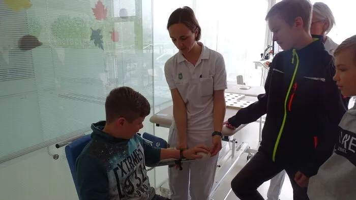 Im Rahmen des Boys' Days besichtigten zwölf Schüler der NMS Krottendorf das LKH Voitsberg und legten beim Gipsen und in der Ergotherapie Hand an.